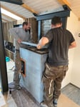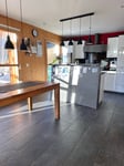 Planung und Einbau Küche, Fliesen Wohnen/Küche/Bad-WC/Dusche-WC, Verblender um Specksteinofen, Einbauschränke Bad. Oscar und Eliane Capaul Nussaus